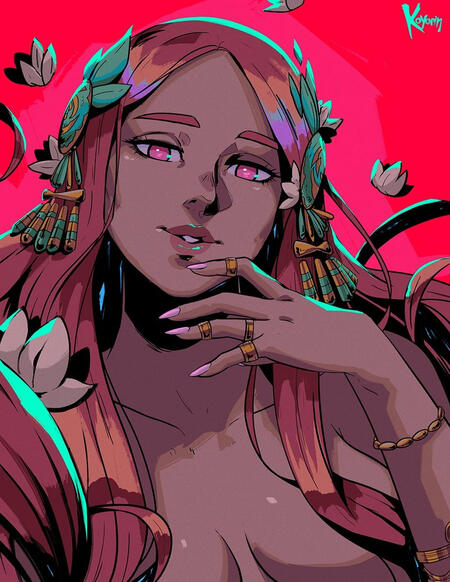(The artwork was drawn by the talented kuroi susumu on Danbooru)Having spent years in Laverre City, Jubilee learned a lot from Valerie who initially ignited her love for fashion and designing accessories. Inspired by her passion and flair, she continued her love for the craft as a fashion designer in Nature's Respite, having studied the subject while observing the Gym Leader as well as the local Boutique. With each new flower that she came across, her head swam with exceedingly extravagent ideas and designs. Ultimately, she decided to sell her creations to let everyone enjoy their beauty.Mega EvolutionThe mighty, ancient tree of Laverre Town had some unforeseen effects on the Grass-type after daily exposure to it around the Gym. Apparently, it amplified her ability to absorb sunlight through her skin to such an extent that it enabled her to temporarily tap into a 'fully bloomed' version of herself akin to a Mega Evolution.If no close bond with a Trainer is formed yet, it can also be enduced by the Sun Stone embedded in her necklace.(The artwork for her Mega Evolution below was drawn by the talented koyorin on Danbooru)